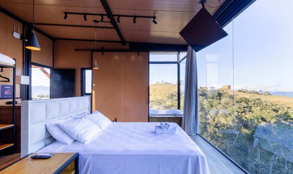 O aumento do interesse por viagens curtas e hospedagens calmas e verdes também movimenta o turismo local. Um exemplo é o Vistas de Anitá, empreendimento desenvolvido pela Seazone, maior gestora de aluguel por temporada do país. Instalado em um terreno de 28 hectares, o espaço reúne 40 cabanas panorâmicas cercadas por mata nativa, trilhas e quedas d’água.