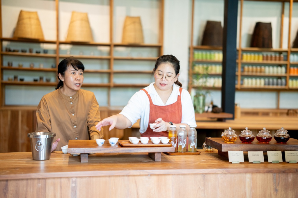 A vivência sensorial é um dos grandes atrativos. Os visitantes acompanham o processo inteiro, desde a retirada da umidade das folhas até a torra final, percebendo como cada método altera o resultado da bebida. O momento da degustação revela a profundidade da tradição do chá tailandês e oferece vinte variedades entre opções quentes e geladas.