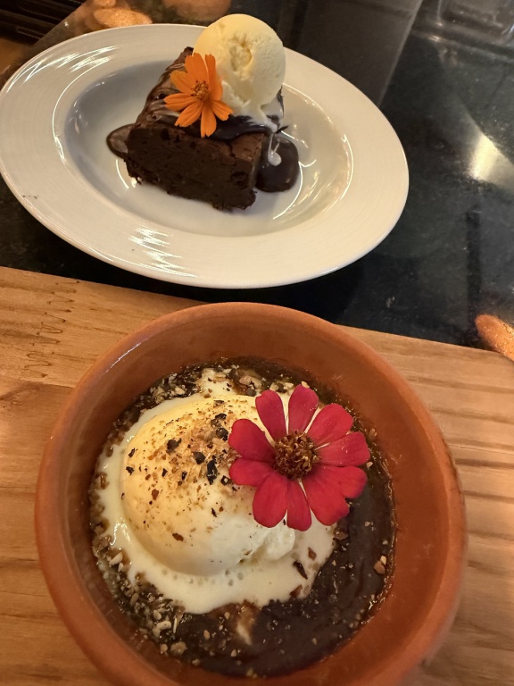 Na sequência, destaques incluem o entrecôte au poivre (contra filé de angus, molho de pimenta preta, mostarda dijon e batatas rústicas), o pirarucu grelhado ao molho de arancia (corte nobre de pirarucu grelhado com legumes grelhados ao molho de laranja) e o tagliatelle al ragú di cupim (talharim ao ragu de cupim e parmesão). De sobremesa, o brownie de castanha de baru (brownie de chocolate 70% e castanha de baru com gelato de baunilha) e a goiabada assada (goiabada assada ao vinho e amendoim com gelato de queijo Nicola) são pedidas certas.