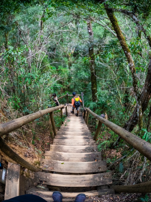 Já o Circuito do Pião, um dos mais procurados, também possui um percurso longo, com aproximadamente 9,5km (ida/volta) e duração média de 6h para vencer as muitas subidas e descidas íngremes e chegar às grutas do Monjolinho, conhecida pela sensação de frescor e pelo silêncio característico das cavidades menores; do Pião, que tem esse nome por ficar próxima ao icônico Pico; e dos Viajantes, tradicional parada dos trilheiros, com uma ampla área de abrigo natural.