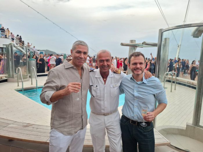 Dario Rustico e Ruy Ribeiro com o capitão do Costa Favolosa