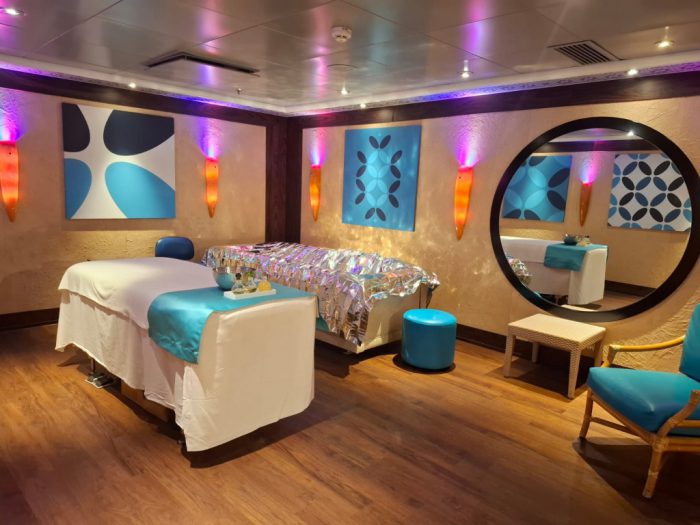 À medida que caminhamos pelo navio, é impossível ignorar seus atrativos: nove piscinas e jacuzzis, nove bares, oito restaurantes, spa com diversos tratamentos, além de um parque aquático com toboágua que sempre acaba despertando a criança interior — mesmo dos mais discretos. Pelo teatro de três andares, cassino, lojas e espaços esportivos, o clima era de celebração total pela abertura da temporada.