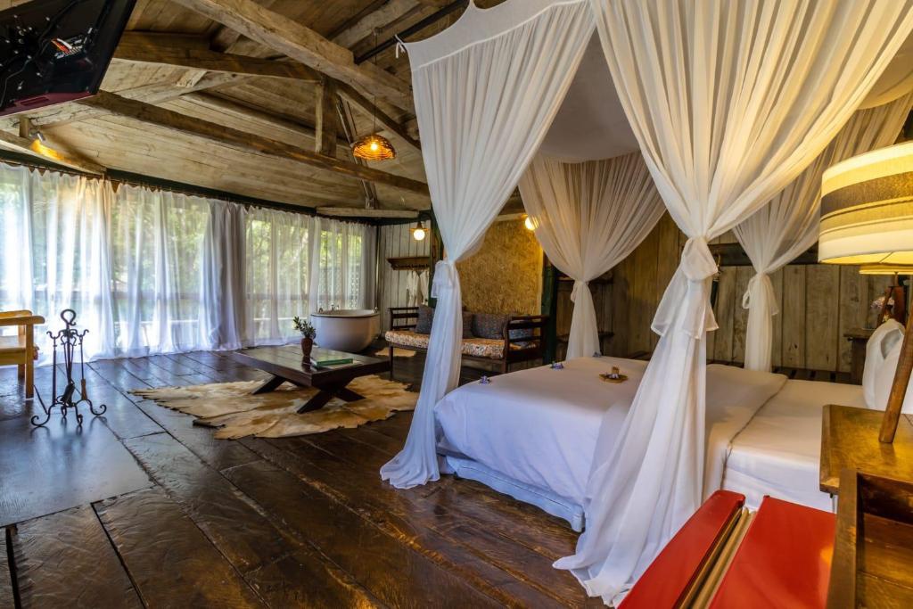 Após as caminhadas, o clima serrano e o ritmo tranquilo da vila favorecem momentos de descanso. Pousadas e espaços de retiro oferecem práticas de yoga, meditação e alimentação natural, fortalecendo o caráter de bem-estar e autocuidado que define o lugar. A cerca de 3 km do Parque Estadual do Ibitipoca, a Pousada Janela do Céu oferece um ambiente acolhedor e cercado de verde, ideal para quem busca relaxar e aproveitar o contato direto com a natureza.