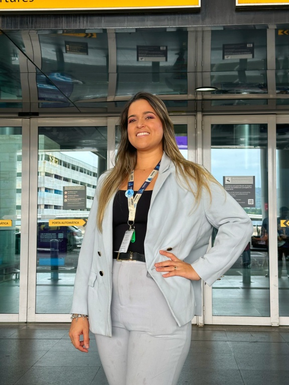 Filha de comerciantes no ramo de móveis, desde cedo conviveu com a rotina de vendas e gestão. Com apenas 15 anos, começou a atuar no negócio da família. Ao completar 18 anos, passou a administrar uma segunda loja aberta em seu nome, experiência que ampliou sua visão de gestão. Paralelamente, em 2016, criou um pequeno negócio na área de produtos personalizados. Em 2019 começou a prestar serviços de forma esporádica para a Aero Service, sendo que passou a se dedicar à empresa integralmente a partir de 2021. Ao lado do marido, Matheus Santos, liderou uma fase intensa de expansão da empresa, com participação em feiras de turismo, ampliação da carteira de clientes e estruturação de equipes. Atualmente, ela concentra-se na gestão administrativa e financeira da empresa, além da coordenação interna das operações, papel que ganhou ainda mais destaque após o nascimento de seu filho, Benício, há um ano. “Planejar, ver resultado, ver as coisas acontecendo é o que me deixa feliz, o que torna gratificante o serviço. Eu preciso ver as coisas acontecendo”, diz.