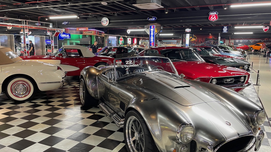 Entre os veículos em exposição estão Ford Mustang GT, Rolls Royce Silver Cloud, Cadillac Eldorado, Ferrari Testarossa, Plymouth Fury, Lamborghini Diablo e muito mais. Há ainda uma área dedicada a réplicas de modelos de automóveis da Fórmula 1, como o McLaren usado por Ayrton Senna nas suas últimas cinco provas, e outra para carros que marcaram a história do cinema, como o DeLorean, da trilogia “De Volta para o Futuro”, e Batmóveis de diversas épocas. Mesmo quem não é um apaixonado por carros acaba se encantando com a exposição.