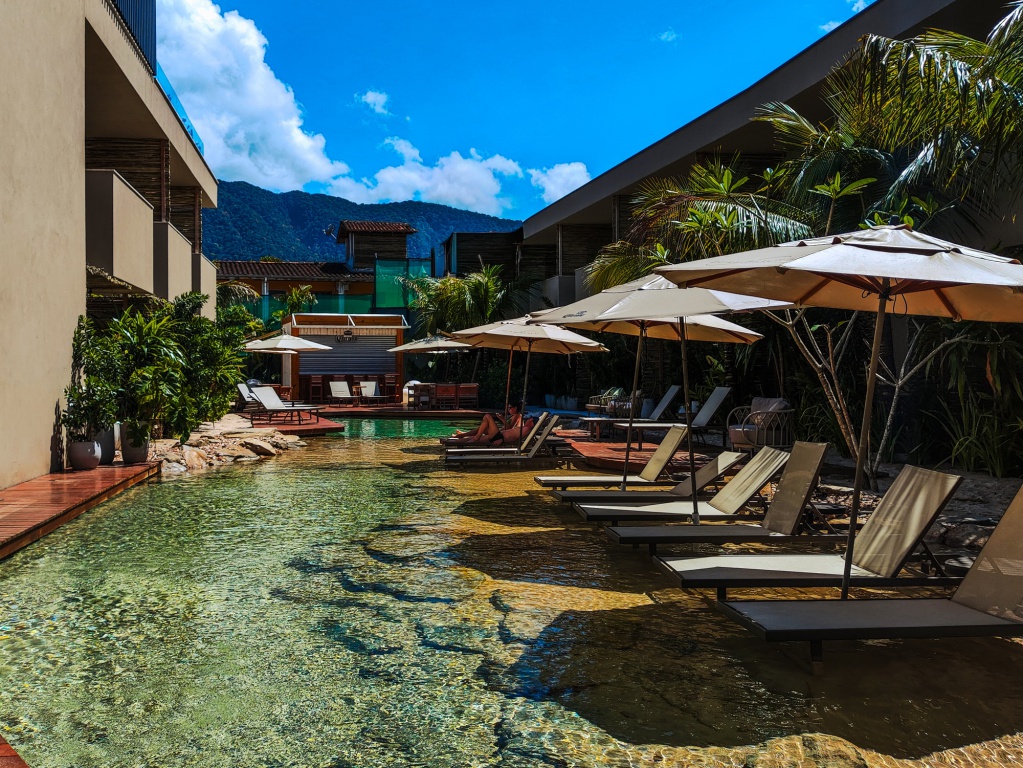 Idealizado por Fábio Duque, o hotel foi inaugurado no fim de 2024 e é voltado ao público adulto. São 33 suítes distribuídas em dois prédios, algumas com jacuzzi ou ofurô na varanda, com vista para o mar ou para o primeiro lago artificial aquecido em um hotel no Brasil. Os quartos contam com colchões Zissou, lençóis Trousseau, amenities L’Occitane, internet via satélite e serviço de quarto 24h.