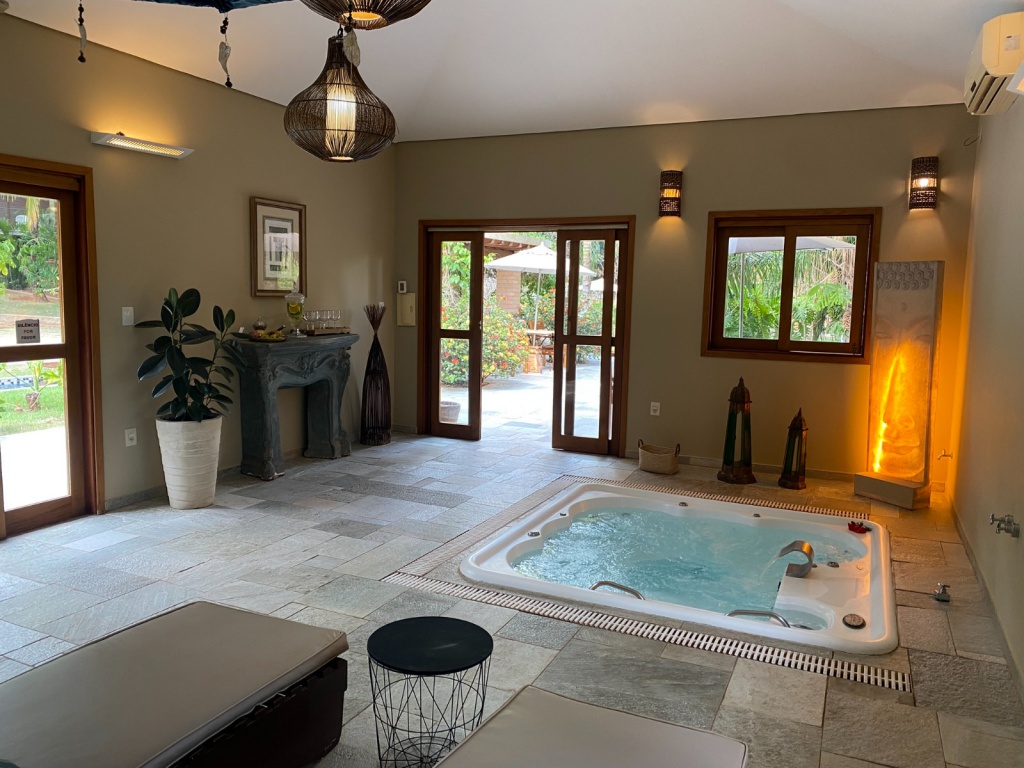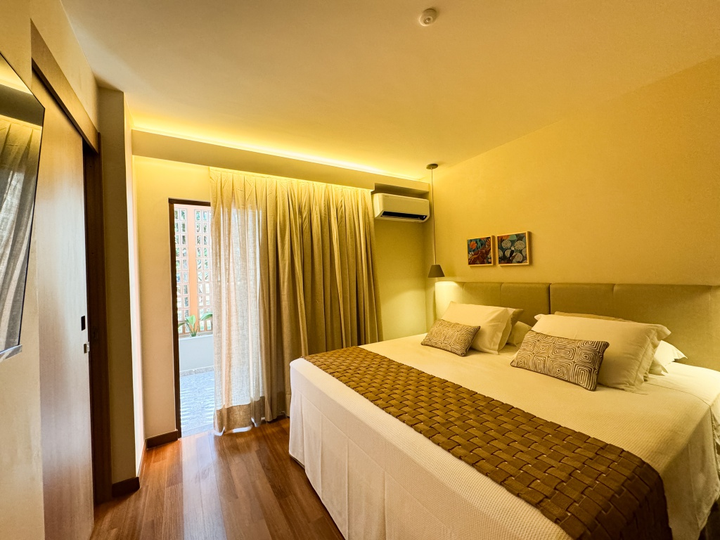 Todos os ambientes seguem uma estética de brasilidade sofisticada, marcada por design orgânico e integração com a natureza.
