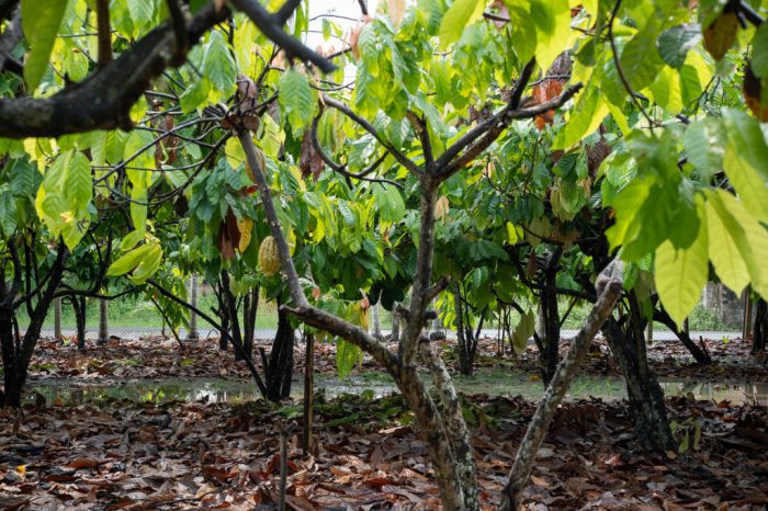 O passeio pela plantação é o ponto de partida para entender o coração da Cocoa Valley. Os visitantes percorrem trilhas ladeadas por árvores robustas, observando frutos em diferentes estágios de maturação. Do verde intenso ao amarelo dourado, cada cor revela um momento do ciclo do cacau. Thanawang explica cada etapa com entusiasmo: “Aqui, as pessoas percebem que o cacau não é apenas um ingrediente, mas um ser vivo que precisa de cuidado e paciência. É uma experiência nova para todos que chegam.”