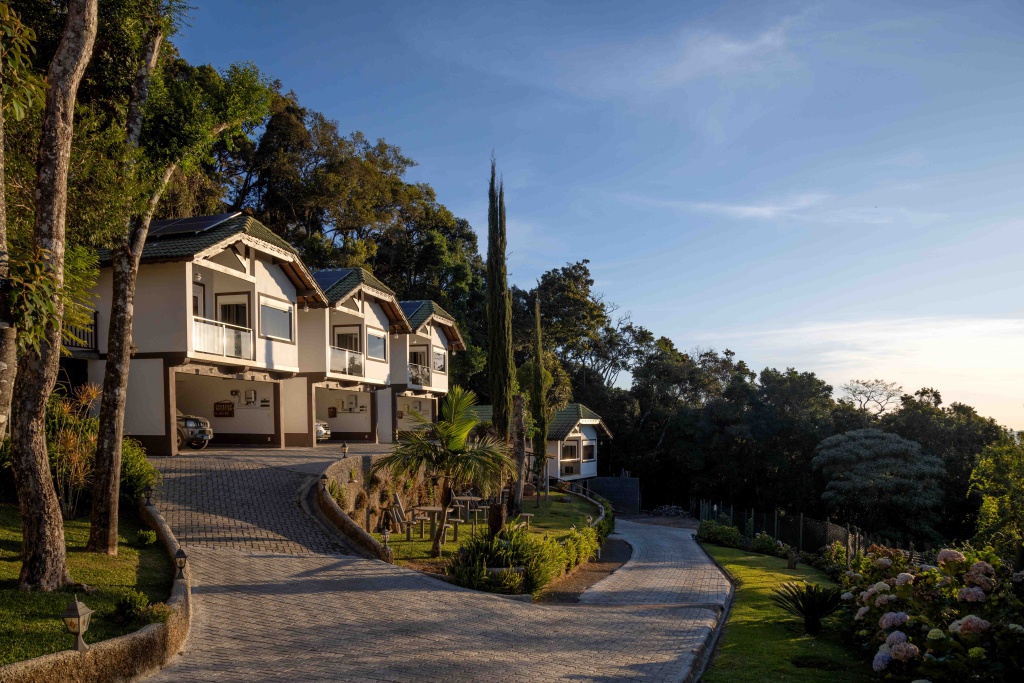 Na parte alta da vila, a Pousada Pedras e Sonhos opera com estrutura enxuta e foco em privacidade — um diferencial em datas de maior ocupação. São apenas oito chalés, todos voltados para a Serra da Mantiqueira, o que garante vista aberta e menor interferência externa. O acesso totalmente pavimentado elimina um dos principais gargalos logísticos comuns em destinos de serra.