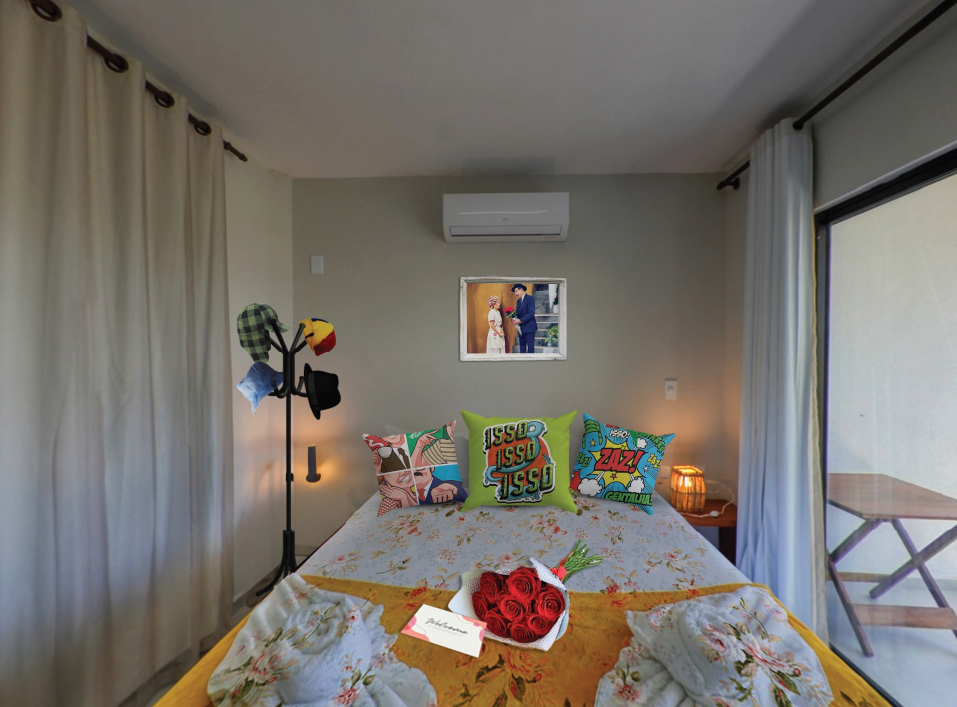 Inspirado na atmosfera lúdica e nostálgica da série criada por Roberto Gómez Bolaños, o quarto tematizado traz referências que vão do famoso barril ao pátio colorido da vila, incorporando também uma releitura praiana — o “Chaves em Acapulco” — para dialogar com o cenário do litoral baiano. O ambiente mantém o conforto original do Vivant Eco Beach, mas ganha decoração e adesivação exclusivas que prometem transportar hóspedes para dentro do universo do personagem.