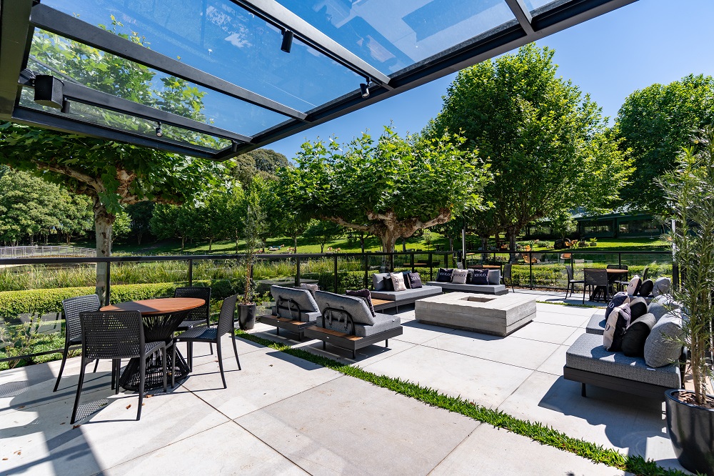 No segundo piso, o visitante encontra o rooftop, que se destaca como um dos elementos mais simbólicos da transformação. Com 135 m², o espaço aberto de contemplação amplia a relação do visitante com a paisagem do Vale dos Vinhedos, permitindo desde pequenas celebrações a degustações personalizadas para até 80 pessoas, sempre com o cenário da vinícola como protagonista. Equipado com copa exclusiva, banheiros e vista privilegiada para o Wine Garden, o lago e os vinhedos, o rooftop pode ser acessado tanto por escada quanto por elevador, reforçando a acessibilidade e a integração entre os ambientes. Neste piso, há mais uma sala de degustação e, ainda, um auditório para degustações mais técnicas, preparado para atender grupos de estudo, treinamentos e eventos especializados.