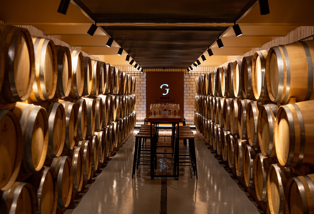 Os investimentos também chegaram ao interior da vinícola com a criação da Cave Giuseppe, projetada para receber os oito ovos de concreto utilizados na elaboração dos vinhos da linha Miolo Giuseppe, cada um com 2,70 m de altura e capacidade para 3.100 litros. O espaço recebeu tratamento cênico completo, com iluminação, revestimentos, passarelas de manutenção e integração direta com a sala de barricas, que agora funciona como sala de degustação do novo Tour Giuseppe Miolo, equipada com uma mesa central para 24 pessoas.